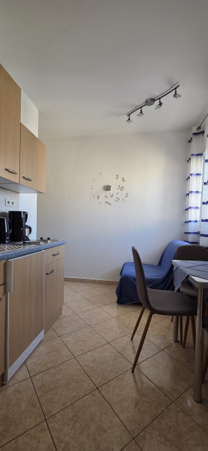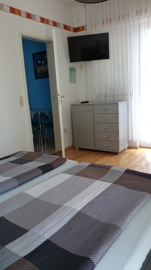 Die Ferienwohnung Nr.3 befindet sich im Obergeschoss und umfasst ein Schlafzimmer für 2 Personen, eine Wohnküche und ein modernes Bad. Sie hat den größten Balkon im Haus, der vom Schlafzimmern und von der Wohnküche aus betreten werden kann. Im großen Kleiderschrank im Schlafzimmer ist viel Platz für all Ihre Sachen. Für das Wohlbefinden sorgt eine Klimaanlage und Flachbildschirm Fernseher.
